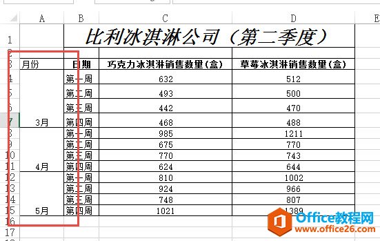 如何实现样图的都多标签表达呢?只需对数据区进行改造就可以了。增加一列,并设置好月份,注意需要合并单元格。下图红框处。
