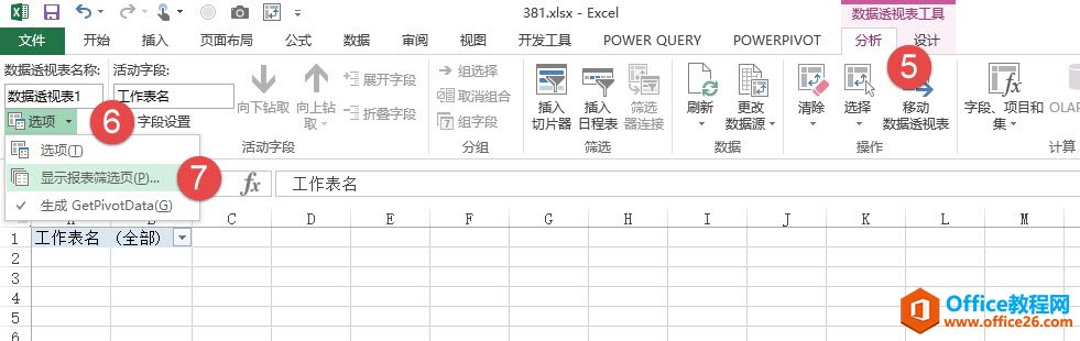 然后点击“分析-选项-显示报表筛选页”。(下图7处)