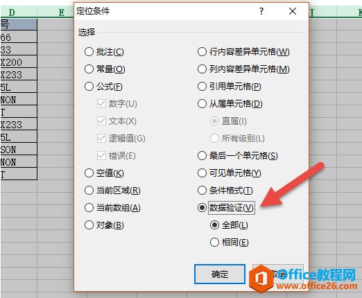 在新弹窗口中选中“数据验证”。然后点击确定。
