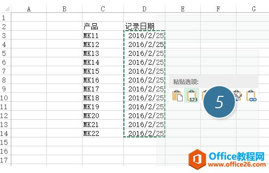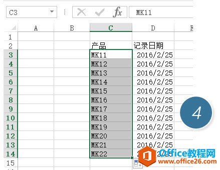 这是输入产品编号的时候,自动就会显示当前日期。下图 4 处。