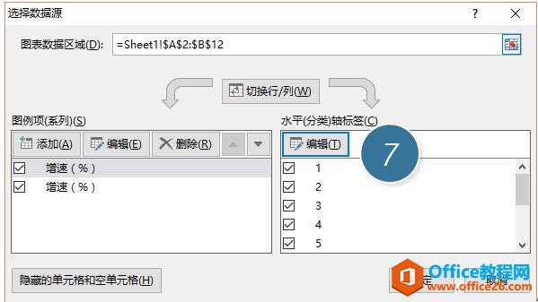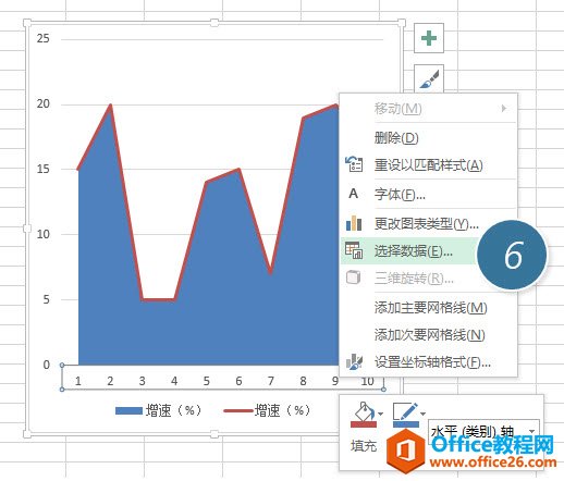 选中横坐标轴,点击鼠标右键,选择数据。(下图 6 处)