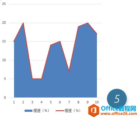 图表基本效果如下,但有个问题,横坐标显示为1~10的数字,而不是数据区的数据。那就要掌握如何更改坐标轴数据显示的方法。(下图 5 处)