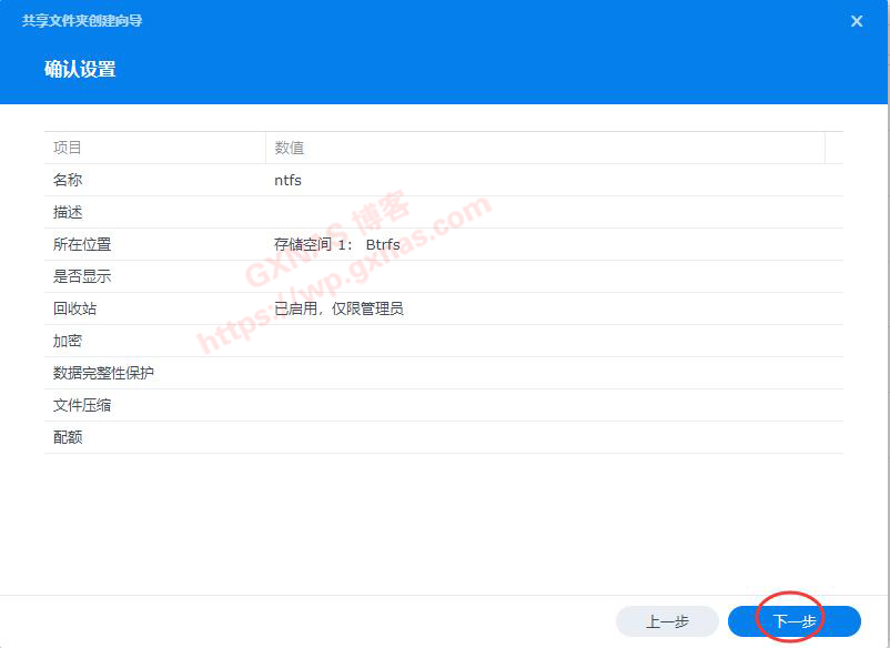 2、名称可以自己定义(只能用英文字母或者数字,不可以用中文或者特殊符号),所在位置根据实际情况选择,我这台是单个存储空间,没得选择了,下一步;