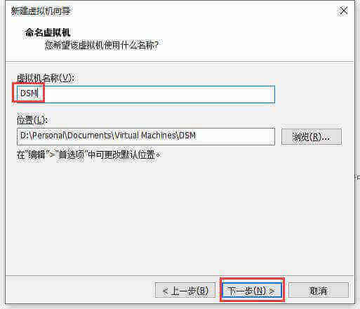 4、给新建的虚拟起个名字,位置可以根据自己的需求来选择虚拟机文件的保存路径(这个路径需要记得,后面还需要),下一步;