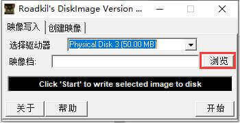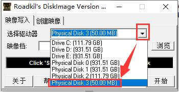 16、在电脑上运行Roadkil’s DiskImg,在“选择驱动器”的下拉菜单,选择50MB这个;
