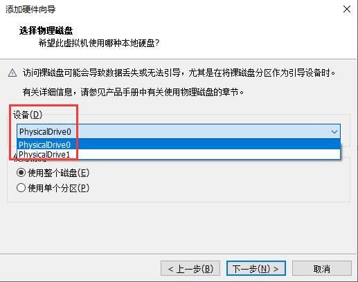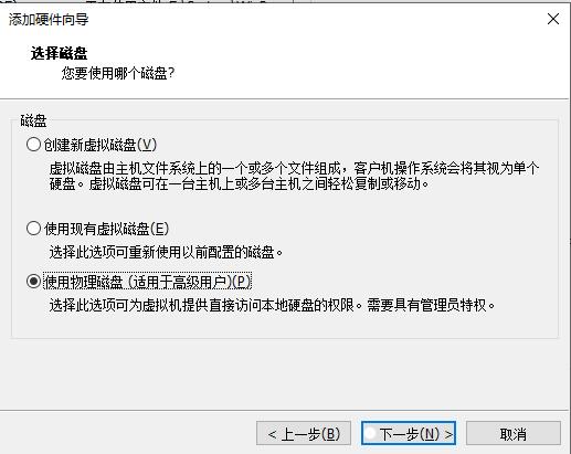 1)在创建磁盘的时候,选择物理磁盘,下一步;