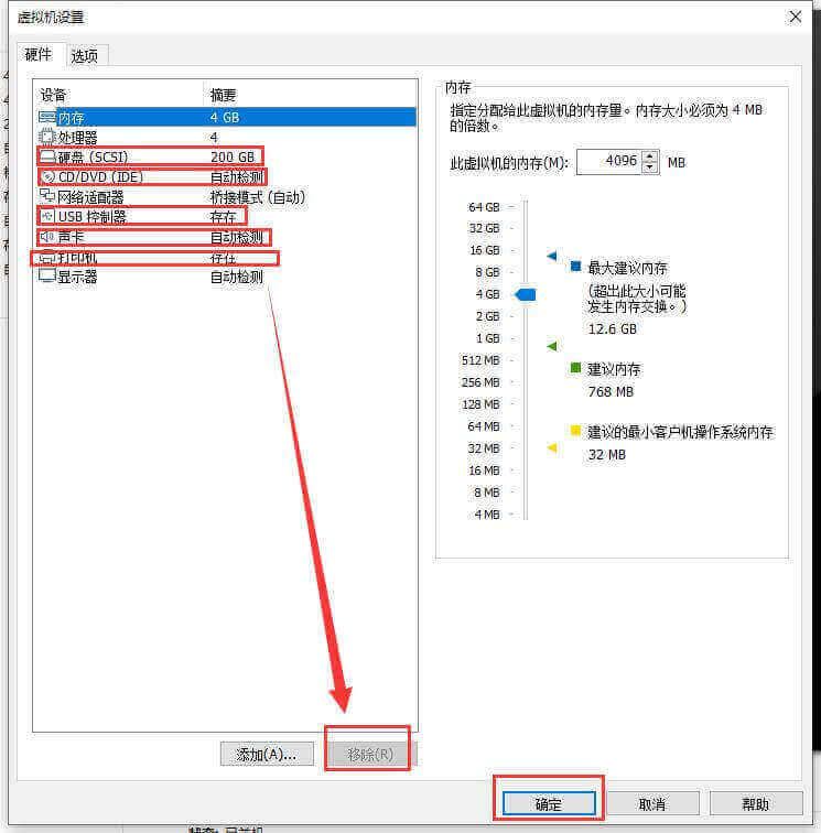 26、移除硬盘、CD/DVD、USB控制器、声卡、打印机;