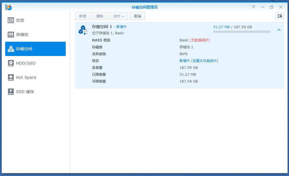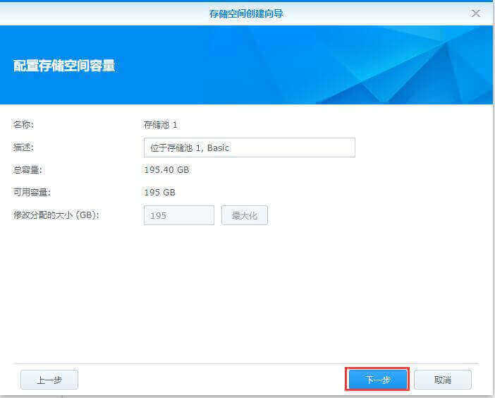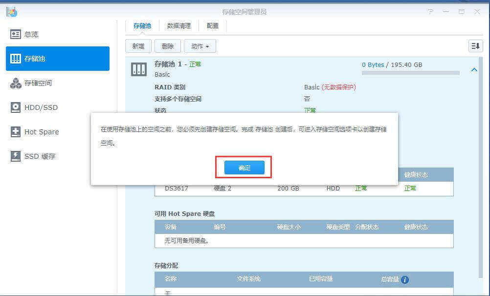 这里需要说明一下:这里显示的磁盘1、2,均为群晖虚拟机里面的磁盘(对应为50MB的引导盘和200G的存储盘),并非是你在Win系统看到的物理硬盘。
