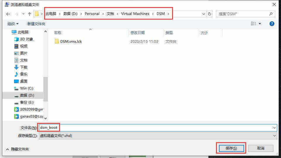 14、把文件保存到刚才第4步新建虚拟机的路径,文件名起一个名字;