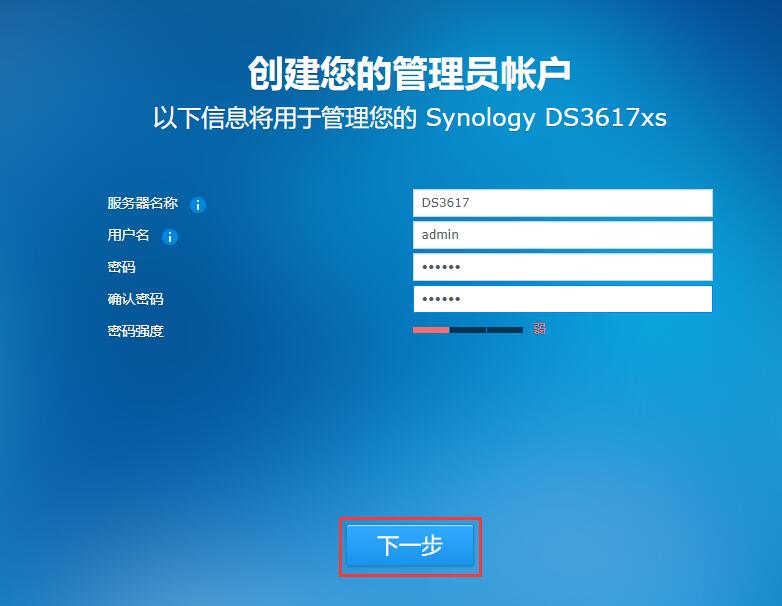(1)admin为群晖默认的管理员账号。如果你在这输入的并非是admin,那么系统也会自动帮你建立一个admin的管理用户;