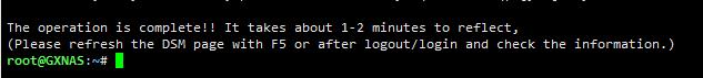 # 切换到root账户(注意:使用此命令后,输入密码时屏幕无显示,输入完成按回车即可);sudo su# 进入补丁文件所在路径(如果你不是放在这个路径的,请自己更改下面的命令);cd /volume1/docker# DSM6.X调整ch_cpuinfo文件的权限;chmod 755 ch_cpuinfo