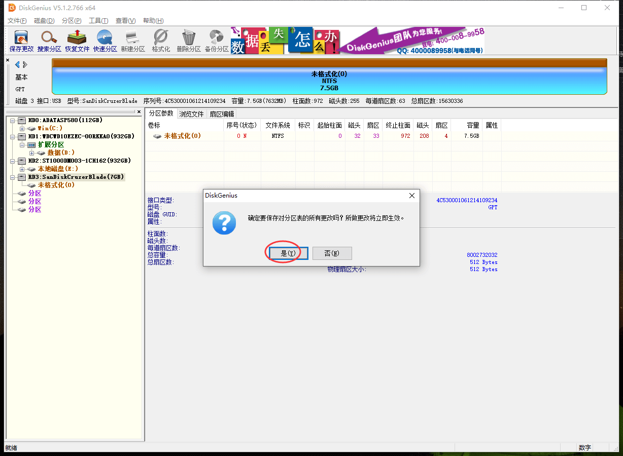 3、确认无误后,点“是”