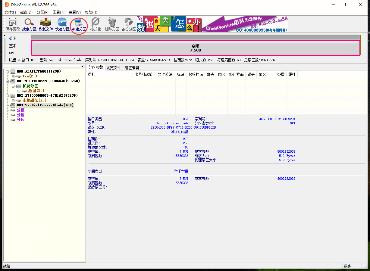 1、DiskGenius:删除硬盘分区的工具,本教程用DiskGenius V5.1.2.766_x64;