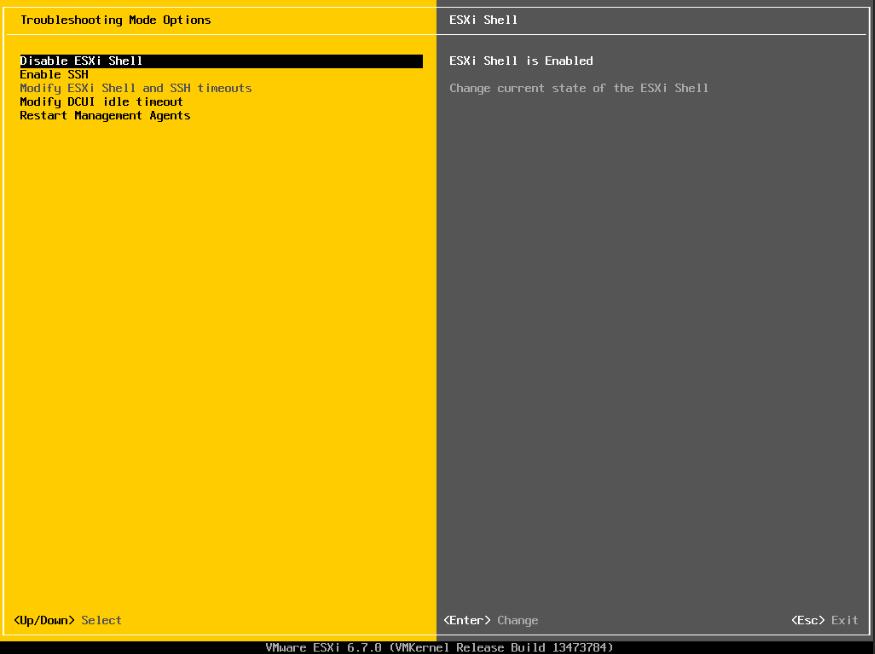 1、ESXI主机接上键盘和显示器,在ESXI控制台界面,按F2输入ESXI的root用户密码进行登录,在 Troubleshooting Options 处回车进去;